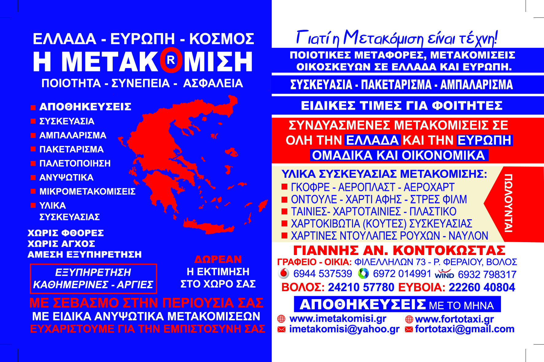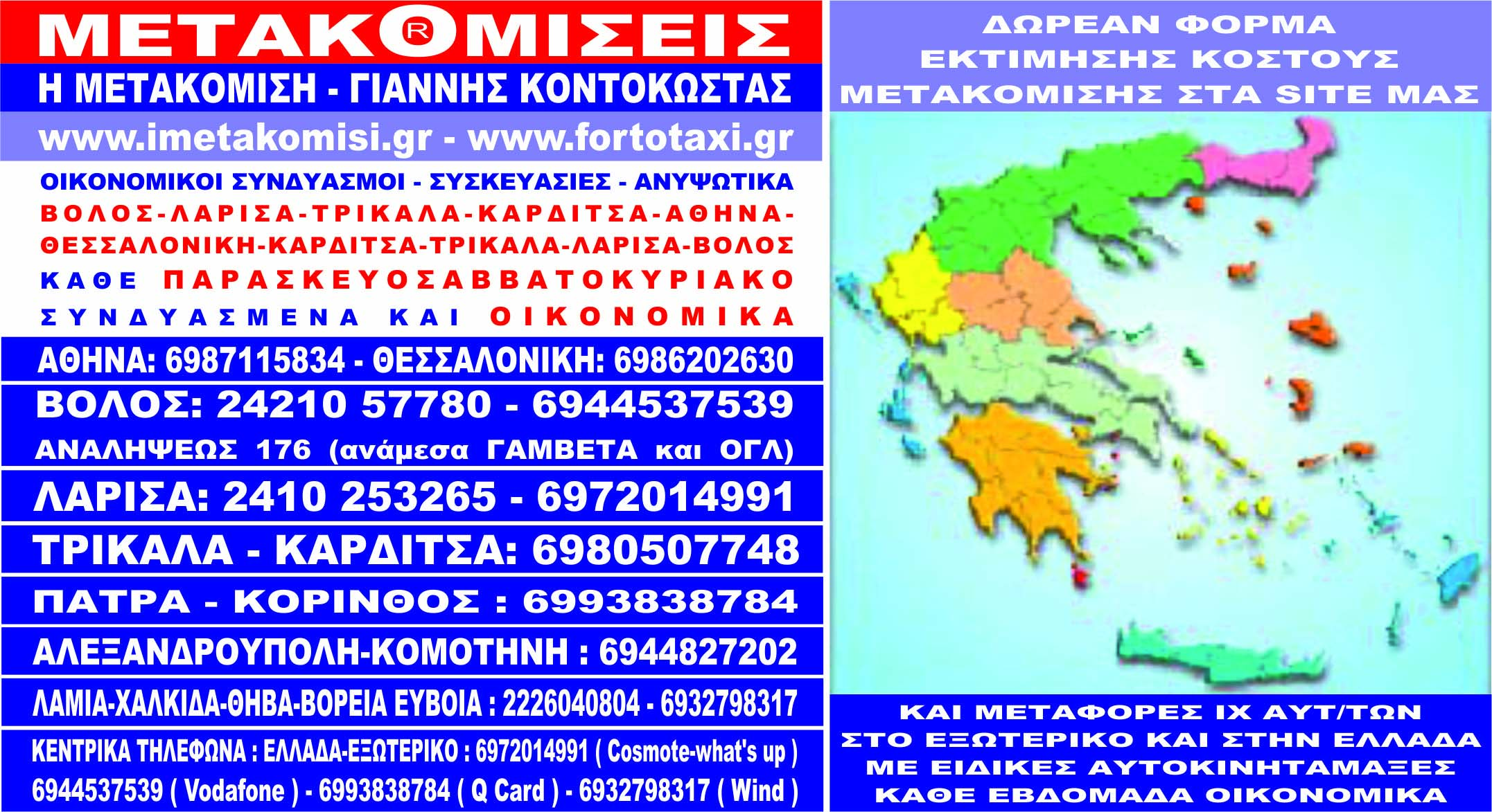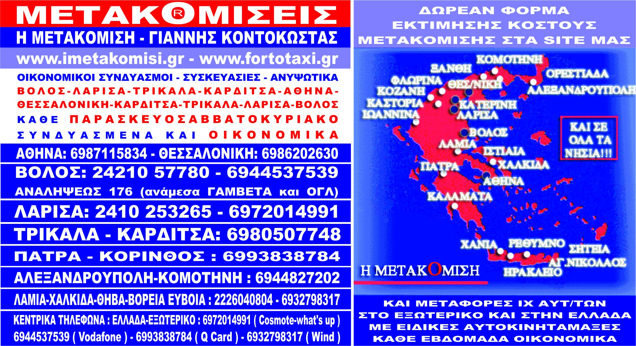 ΜΕΤΑΦΟΡΩΝ ΟΙΚΟΣΚΕΥΩΝ ΚΑΙ ΙΧ ΑΥΤΟΚΙΝΗΤΩΝ ΑΠΟ ΚΑΙ ΠΡΟΣ ΟΛΗ ΤΗΝ ΕΛΛΑΔΑ ΤΟΠΙΚΑ ΚΑΙ ΠΑΝΕΛΛΑΔΙΚΑ,